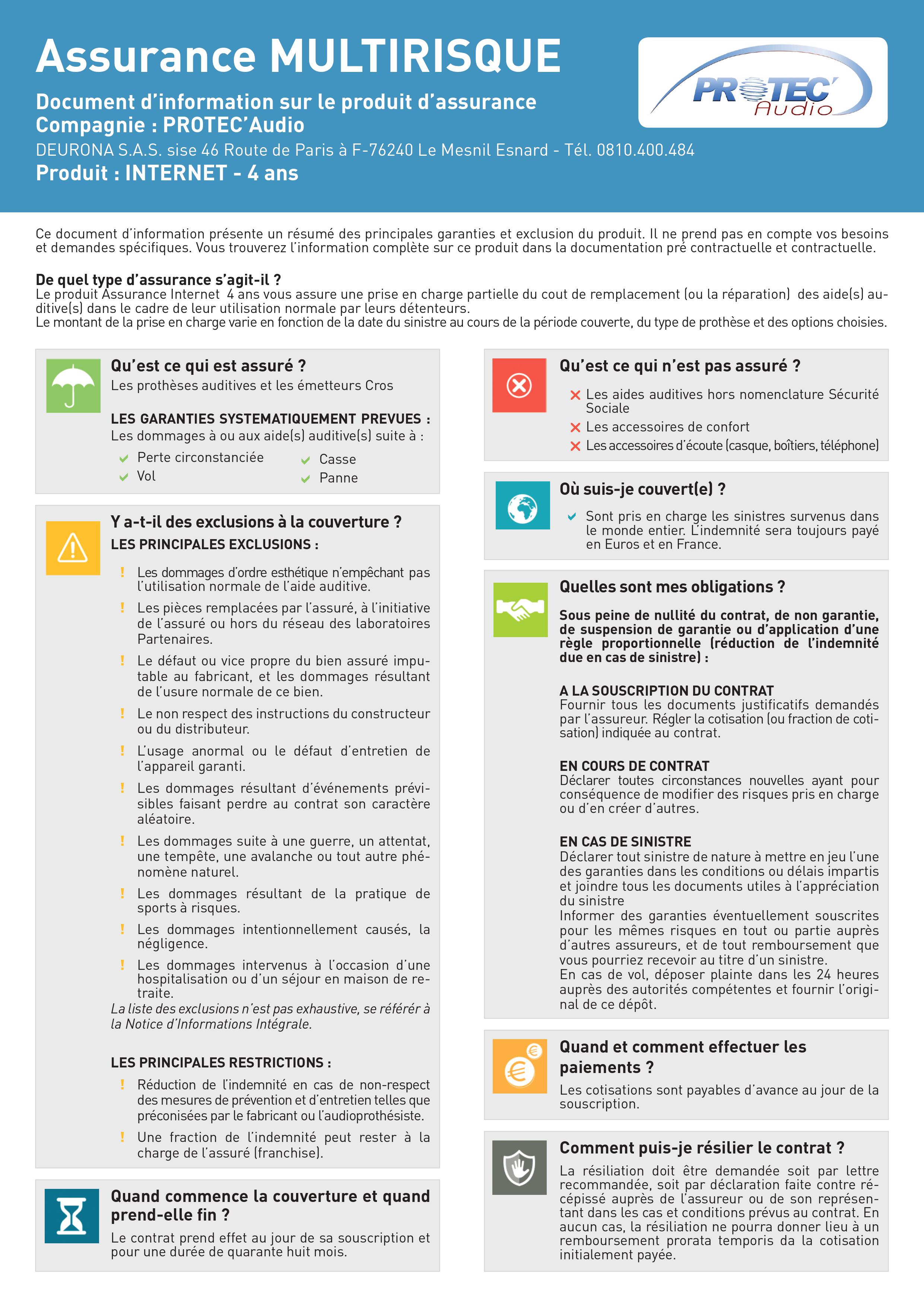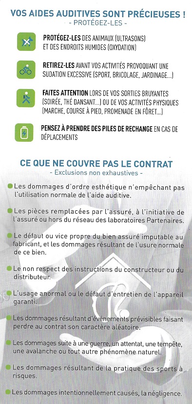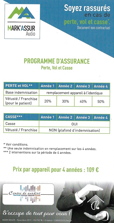 Nous conseillons l'assurance suite à la réforme RAC 0 € - 100 % Santé qui bloque tout renouvellement d'AIDE AUDITIVE pendant 4 années après l'achat, même en cas de perte...